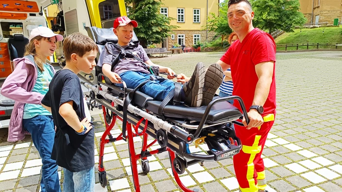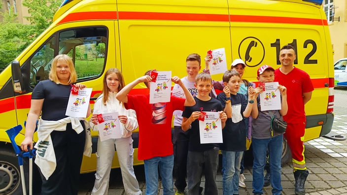 Im vergangenen Schuljahr haben sich wieder einige Schülerinnen und Schüler der 5. und 6. Klassen für die Teilnahme an der AG Schulsanitäter entschieden. Mitarbeitende des DRK Zeitz schulten die AG-Teilnehmer in den Grundlagen Erster Hilfe und unterstützten z.B. beim Tag der offenen Tür. Doch auch darüber hinaus wurden den Schülerinnen und Schülern kleine Höhepunkte geboten. So stand etwa im April wieder der Besuch der Droyßiger Feuerwache an, der Einblicke in die Aufgaben und Ausrüstung der Freiwilligen Feuerwehr bot. Zum Schuljahresabschluss erhielten sie dann noch eine exklusive Vorführung eines Rettungswagens. Natürlich durften sie dabei den RTW nicht nur von außen begutachten, sondern sich auch alles ganz ausführlich im Innenraum erläutern lassen. So erhielten sie Einblicke in die technische Ausstattung und durften natürlich manches auch selbst ausprobieren. Zum Schluss erhielten alle AG-Teilnehmer eine Urkunde.