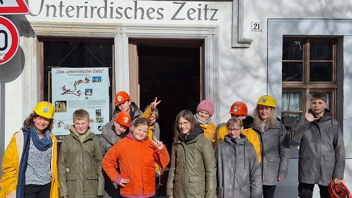 Nach dem langen Sitzen machten wir uns auf zu den Kellern und Höhlengängen von Unterirdisches Zeitz. Mit unseren bunten Jacken und Helmen für die Großen ausgestattet ging’s ins Dunkel hinab. Nur unsere Taschenlampen leuchteten uns den Weg. Wir haben spannende und lustige Geschichten gehört und sogar Skelette gesehen. Es war ganz schön gruselig! Einige von uns finden Steine sehr interessant, deshalb haben sie auch Steine und Kristalle als Souvenirs gekauft. Eine schöne Erinnerung an unseren Teamtag!