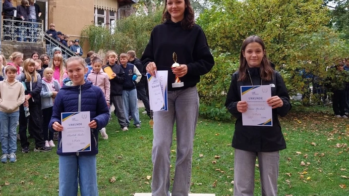 Sport frei – so begann die Eröffnung des Sportfestes durch unseren Schulleiter, Herrn Dr. Auerswald, am 30.09.2025. Pünktlich um 8 Uhr konnte gestartet werden. Das Wetter war nach anfänglich bedecktem Himmel gegen 10 Uhr perfekt. Sonnenschein bei sehr angenehmen 15 Grad Celsius. Insgesamt 498 Schülerinnen und Schüler der Klassenstufen 5 bis 10 waren an diesem Tag sportlich aktiv in verschiedenen Disziplinen, die wieder als Dreikampf gewertet wurden. Dabei ging jeweils ein Lauf, ein Wurf / Stoß und ein Sprung verpflichtend in die Wertung ein. Die Klassenstufen 5 & 6 haben sich in den Disziplinen 50m Sprint, 1.000m Ausdauerlauf, Schlagballweitwurf, Weitsprung und Hochsprung gemessen. Die Klassenstufen 7 & 8 im 75m Sprint, 1.000m Ausdauerlauf, Kugelstoßen, Weitsprung und Hochsprung und die Klassenstufen 9 & 10 im 100m Sprint, 1.000m Ausdauerlauf, Kugelstoßen, Weitsprung und Hochsprung.