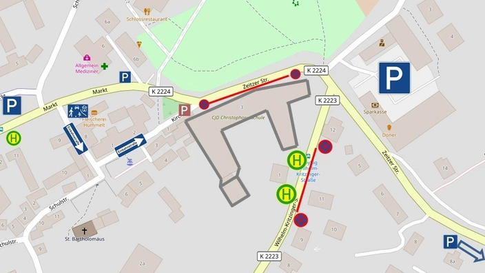 Wir bitten deshalb nachdrücklich, Schülerinnen und Schüler in der Wilhelm Kritzinger Straße auf der Höhe dieser Busabfahrtsstellen in keiner Fahrtrichtung! Und auch nicht in der Zeitzer Straße direkt vor dem Schultor ein- oder aussteigen zu lassen.
